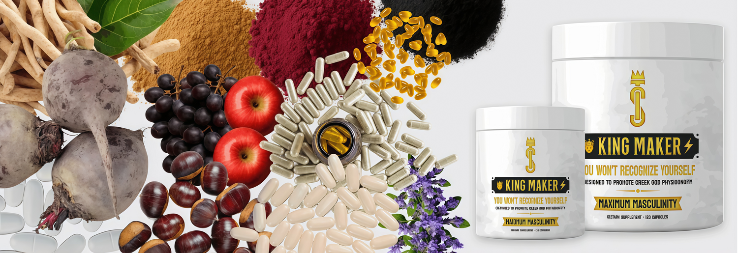 King Maker Supplement is a powerful 13-in-1 natural testosterone booster for men, formulated with herbal extracts, essential vitamins, and performance minerals. This premium anabolic supplement is designed to increase free testosterone levels, enhance strength, maximize stamina, and improve overall male vitality.